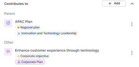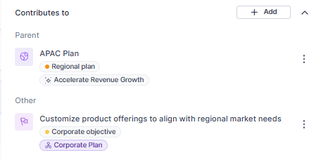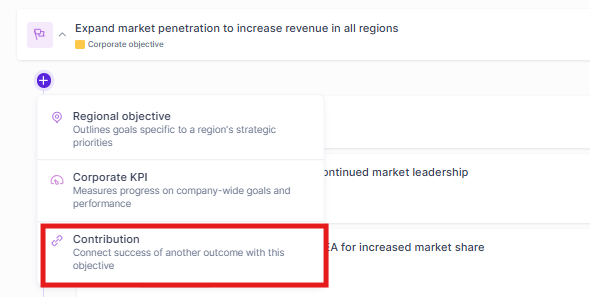 - From the Sidebar of the Objective, in the Contributes to section, click +Add