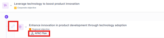 In the Planner, you'll see a link icon next to the objective icon to depict that its a contributing objective. Also, the plan to which the objective contributes to is displayed beneath the objective title. When you click the plan name, it'll take you to the relevant plan's Planner page.