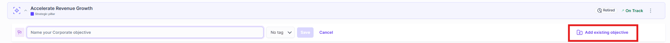 - In the Planner page: click the + icon under the Focus Area, and click Existing objective.