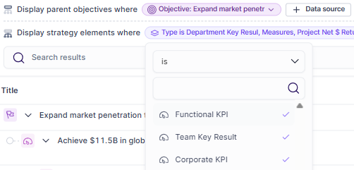 Note that in order for the submeasures to be correctly displayed in the table, the metrics that make up the Metric Tree need to be connected to a Measure in a Plan. If the metric is not connected, it will not show up.