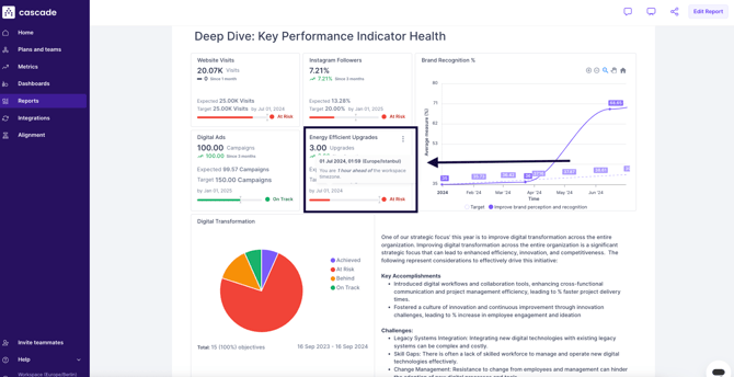To accommodate global customers, you can now set a dedicated timezone for your Cascade workspace. This will ensure unison across your workspace for any date-related areas such as start/end dates, progress updates and Reports - in particular beneficial to users that may be accessing the workspace from a different timezone.